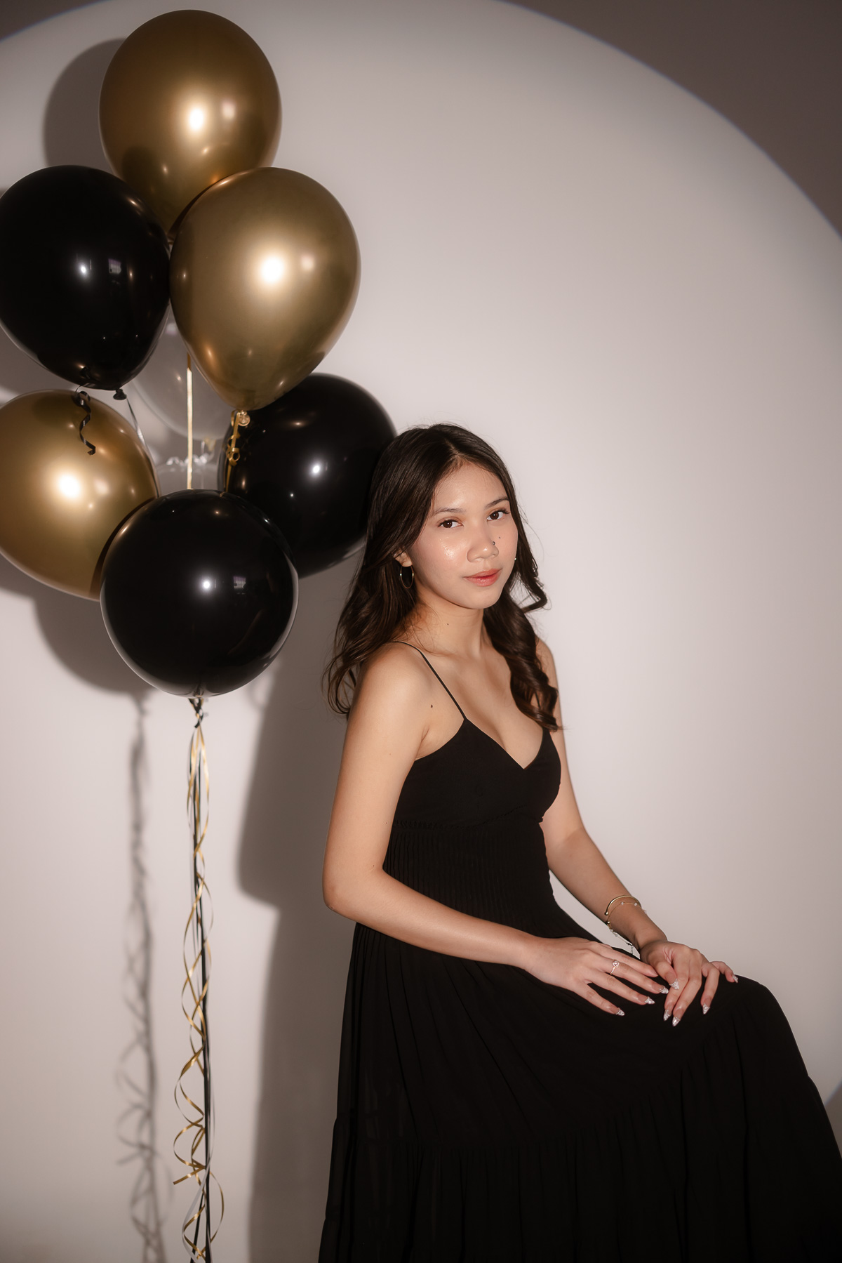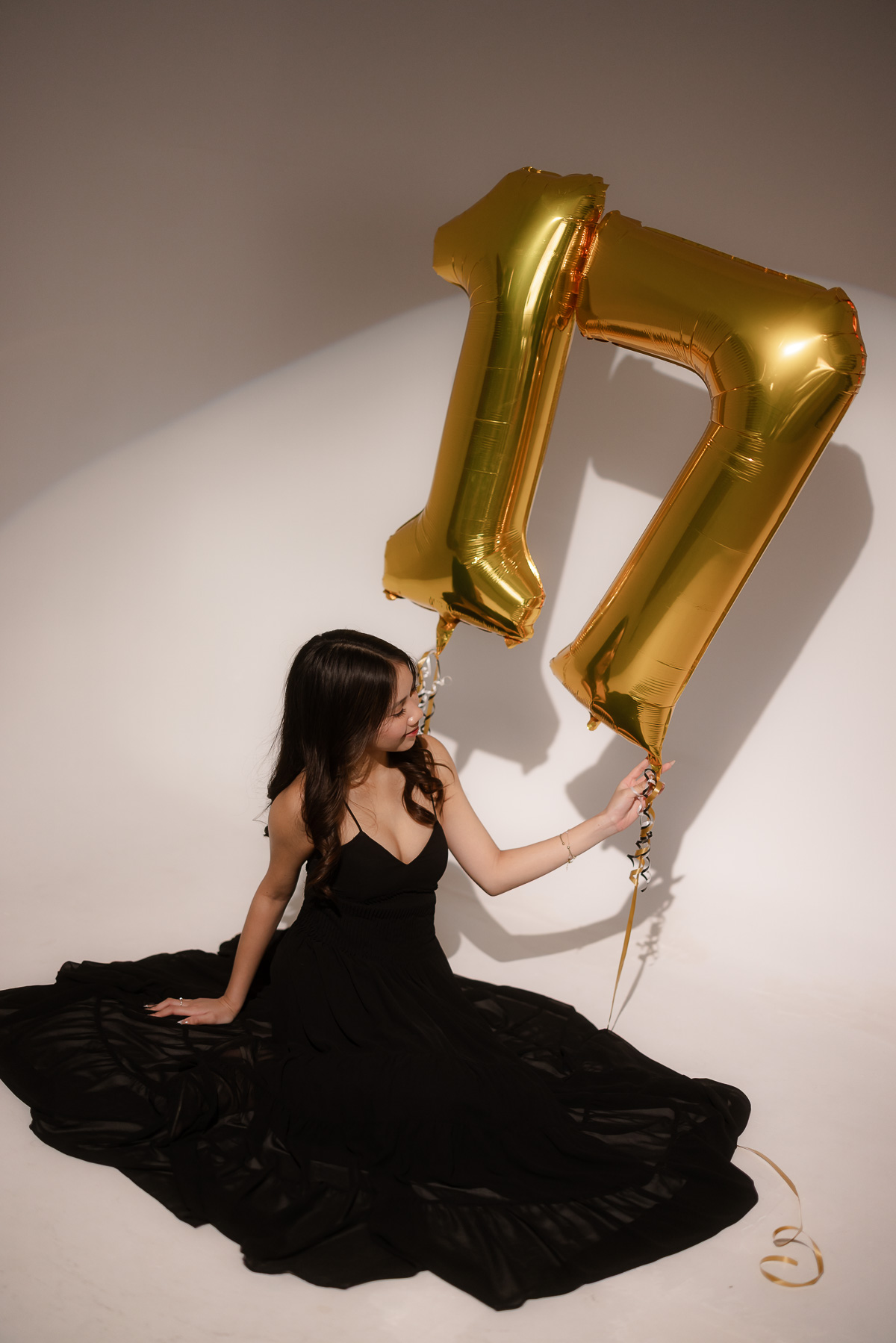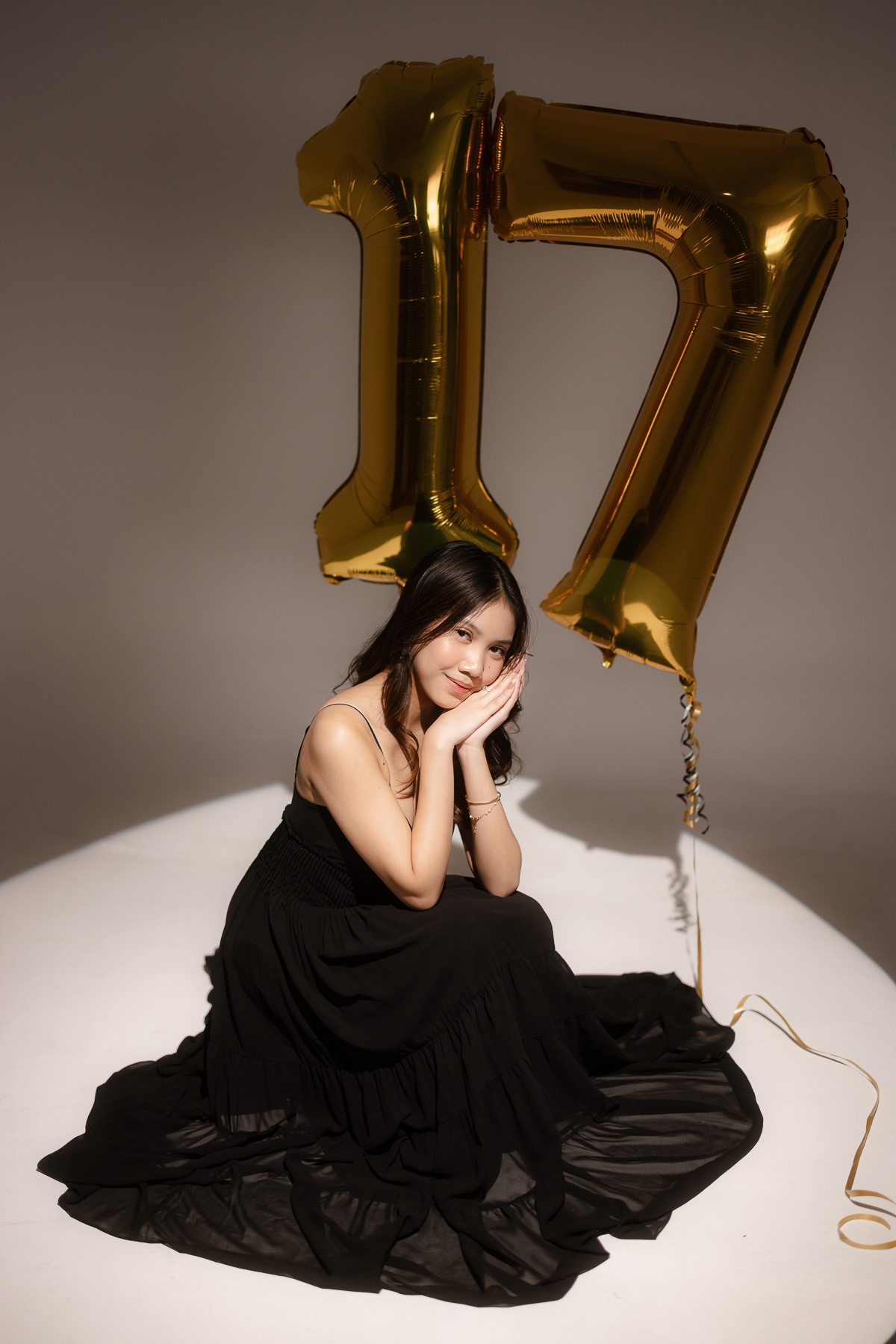 The spotlight photoshoot theme is quickly becoming more popular especially for birthday portraits! My client chose this theme to celebrate her 17th birthday and even brought extra props like the number balloons.