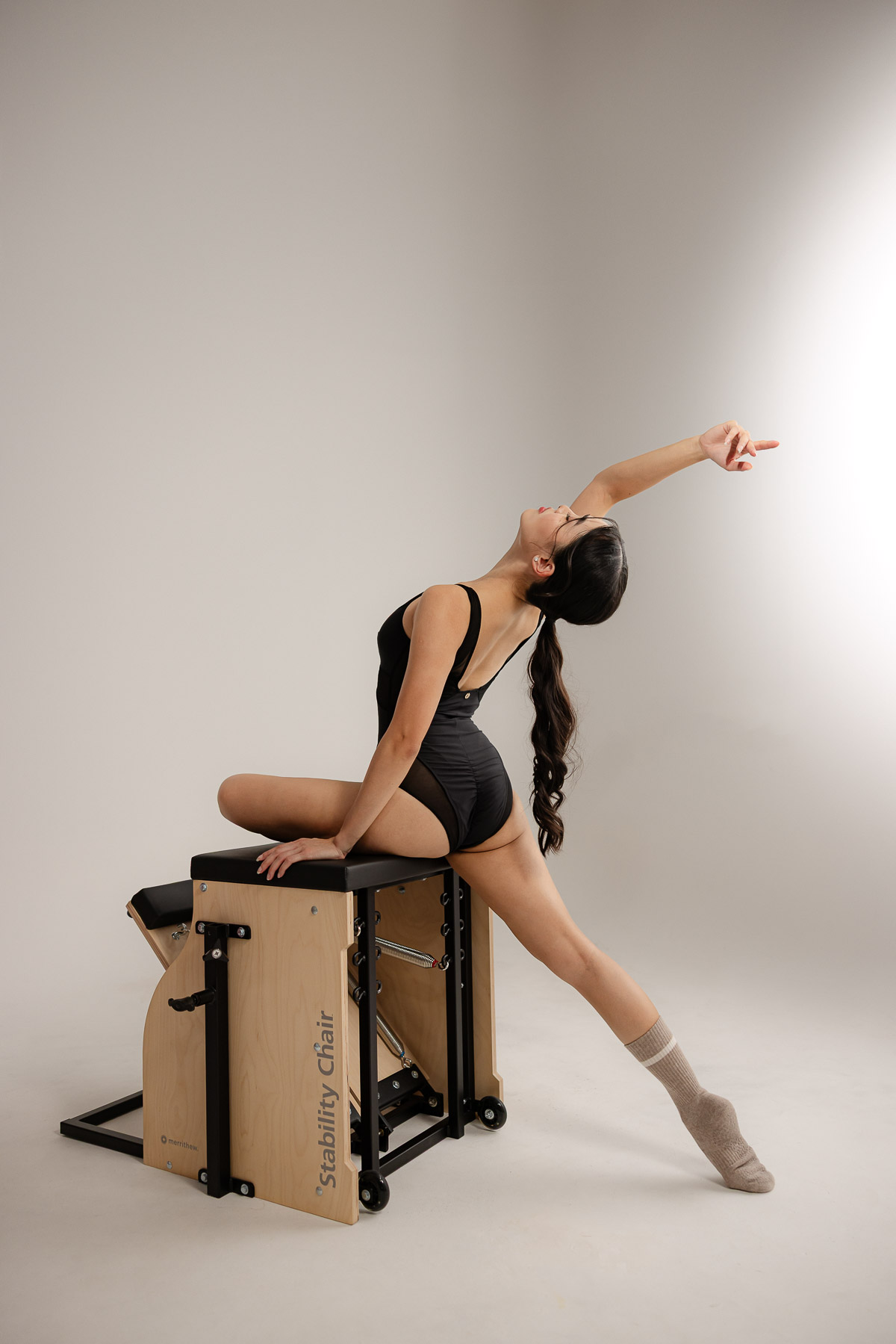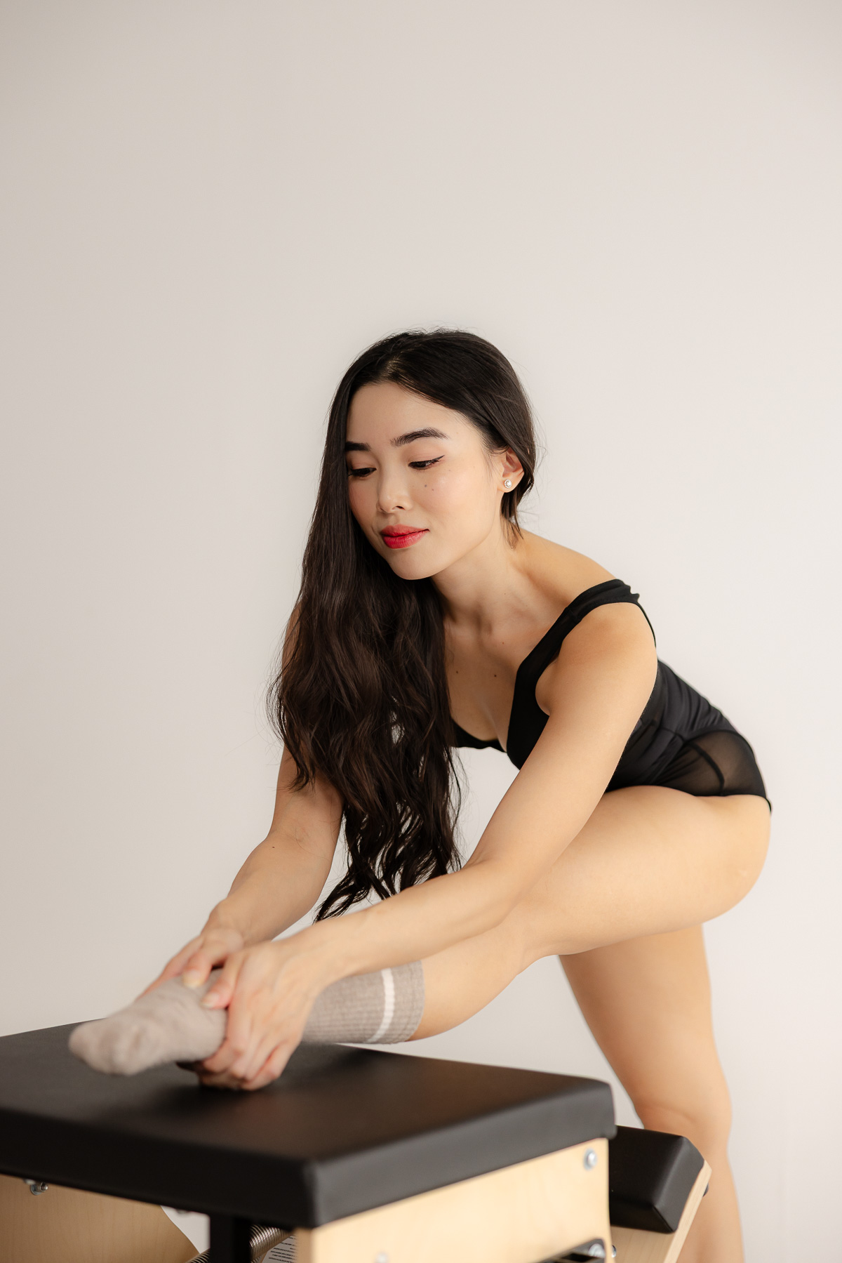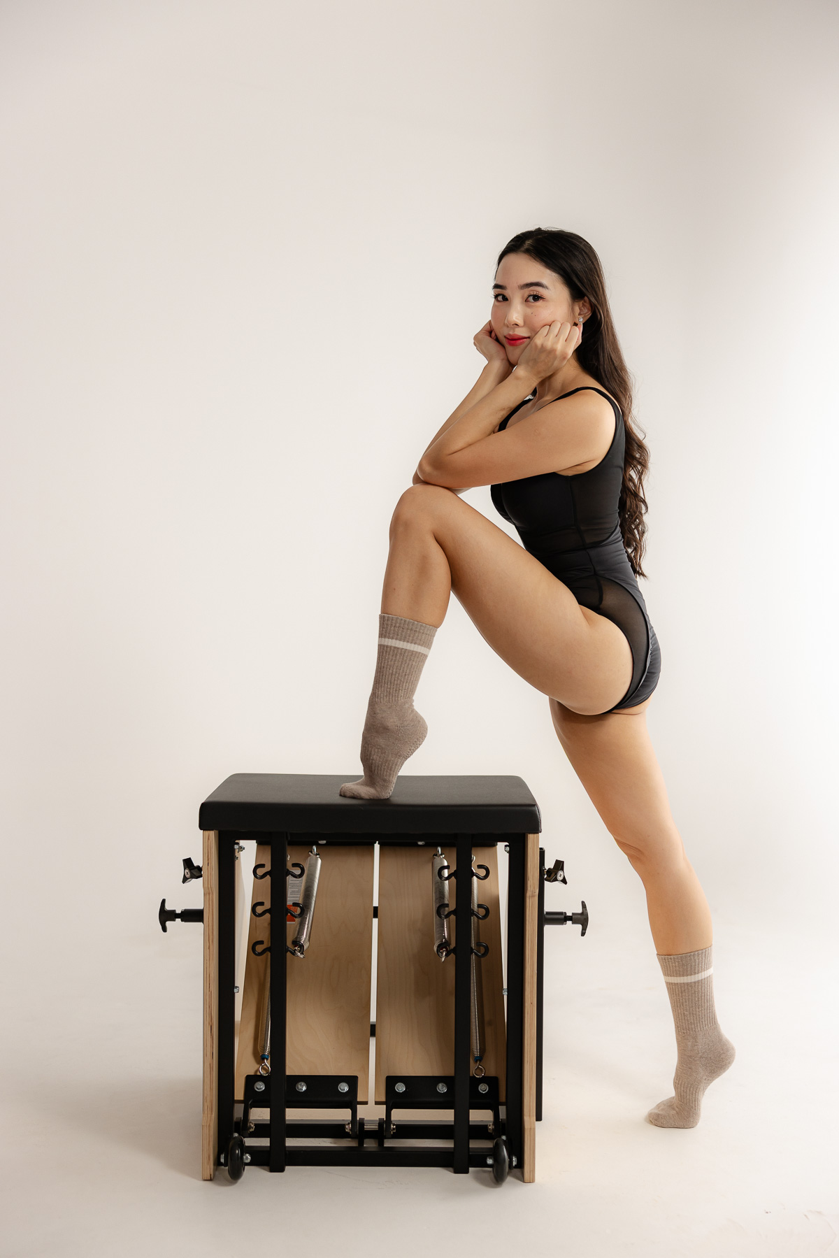 Angela is a pilates instructor that I’ve photographed for a couple years now. We wanted to try something a little different with the pilates equipment in a studio backdrop. She rented a pilates chair and we experimented with some poses and lighting styles. We went with a simple bright set for some movement shots, and then something softer for more pilates instructor branding shots.
